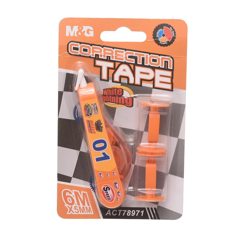 This precision-engineered correction tape set features three orange car-shaped dispensers from M&G's White Lightning series. Each unit delivers clean, instant coverage that dries immediately—no waiting or smudging. The ergonomic car design provides superior handling control, while the durable mechanism ensures consistent application across documents. Ideal for professionals requiring meticulous corrections on reports, forms, and correspondence.